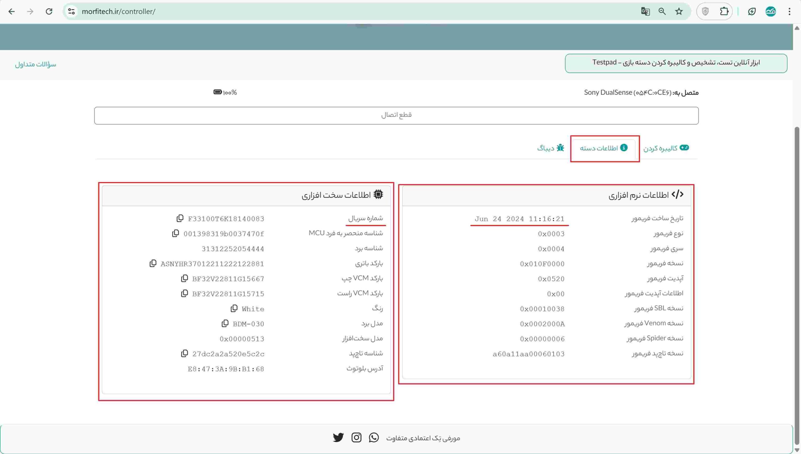 TestPad مورفیتِک دقیقاً برای حل همین مشکل طراحی شده است؛ ابزاری تخصصی که با ارتباط مستقیم با سختافزار دسته، نهتنها اصالت کنترلر را تشخیص میدهد، بلکه اطلاعات فنی واقعی و امکان کالیبراسیون حرفهای را نیز در اختیار کاربر قرار میدهد.